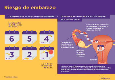 “Después de una relación sexual sin protección (RSSP), el espermatozoide puede sobrevivir durante aproximadamente 5 días dentro del aparato genital femenino. Puesto que una mujer no puede saber con seguridad cuándo ha ovulado, averiguar el momento exacto de la fecundación es difícil. Lo que sabemos es que la implantación del óvulo fecundado en el útero ocurre entre 6 y 12 días después de la fecundación.